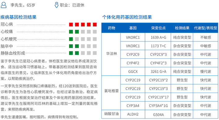 通過(guò)對(duì)華法林、氯吡格雷、硝酸甘油三種常見(jiàn)血栓治療藥物相關(guān)基因進(jìn)行檢測(cè),提高藥物的治療效果,避免藥物不良反應(yīng),為血栓性疾病個(gè)性化用藥提供指導(dǎo)。
