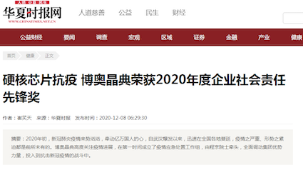博奧晶典榮獲“2020年度企業(yè)社會責(zé)任先鋒獎”