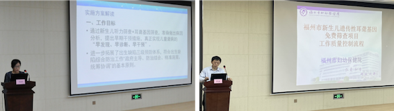 福州市衛(wèi)健委婦幼處副處長劉麗特解讀項(xiàng)目實(shí)施方案(左)福州市婦幼保健院耳鼻喉科主任黃長班解讀項(xiàng)目質(zhì)控流程(右)
