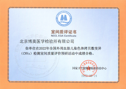 近日,國家衛(wèi)生健康委臨床檢驗中心(NCCL)公布了2022年《全國外周血胎兒染色體拷貝數(shù)變異(CNVs)檢測室間質(zhì)量評價預(yù)研活動結(jié)果報告》,博奧晶典旗下北京博奧醫(yī)學(xué)檢驗所有限公司和東莞博奧醫(yī)學(xué)檢驗實驗室滿分通過該項目室間質(zhì)評。