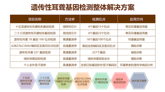 為建立早期、有效的針對查明致聾病因的實驗室檢測方法,2003年,解放軍總醫(yī)院聾病分子診斷中心在國內開展全國聾病分子流行病學調研并發(fā)現(xiàn)GJB2、SLC26A4、線粒體基因、GJB3等是耳聾最常見的基因,且主要以隱性遺傳及母系遺傳為主。2009年,在對全國28個省份3500名大規(guī)模聾人群體耳聾基因突變類型和頻率研究的基礎上,解放軍總醫(yī)院聾病分子診斷中心與博奧生物集團有限公司合作研制出了世界上第一個遺傳性耳聾基因檢測芯片產品。該產品能夠檢測先天性耳聾、藥物性耳聾、遲發(fā)性耳聾相關的致聾基因位點,具有準確、靈敏、高效、穩(wěn)定等特點,解決了痕量樣品基因檢測的難題,同步研制出全套適合大規(guī)模篩查的配套儀器及整體解決方案,使中國人率先擁有開展遺傳性耳聾精準診斷的工具,在婚育指導、產前篩查、新生兒和高危人群篩查、耳聾病因診斷等領域廣泛應用。