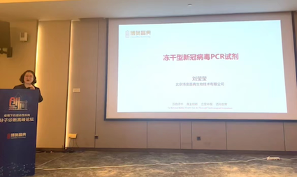 博奧晶典產(chǎn)品總監(jiān)劉瑩瑩博士作了題為《凍干型新冠病毒PCR試劑》的主題報告。作為今年即將重磅上市的嶄新產(chǎn)品,凍干型新冠病毒PCR試劑實現(xiàn)了技術(shù)上的重大突破。與液體試劑相比,預(yù)封裝的凍干試劑,省空間、省人力、省耗材、省時間,最快可在40分鐘內(nèi)完成擴增檢測,滿足臨床對樣本質(zhì)量及檢測過程的全程監(jiān)控,靈敏度高達150拷貝/毫升,確保結(jié)果準(zhǔn)確可靠。同時,劉瑩瑩博士講到,包含全集成芯片實驗室系統(tǒng)、全集成新冠病毒核酸檢測移動實驗室、全自動分杯系統(tǒng)、全自動核酸提取純化儀在內(nèi)的博奧晶典新冠病毒核酸檢測整體解決方案,可為疫情防控提供多重保障。
