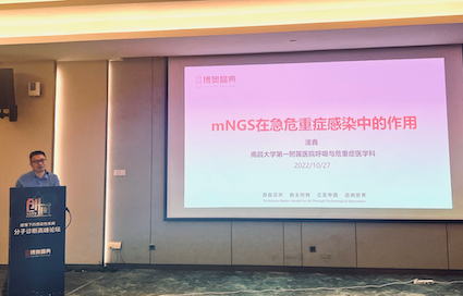 南昌大學(xué)第一附屬醫(yī)院呼吸與危重癥醫(yī)學(xué)科ICU主任淦鑫教授作了題為《mNGS在危機重癥感染中的應(yīng)用》的主題報告。他介紹了目前急危重癥感染中病原診斷的急迫需求,及傳統(tǒng)病原學(xué)診斷方法的局限性。并介紹了mNGS技術(shù)在臨床上應(yīng)用的發(fā)展情況及博奧晶典的mNGS技術(shù)。深刻分析了mNGS在急危重癥感染性疾病應(yīng)用中尚存在的問題。以發(fā)表的SCI文章和臨床應(yīng)用實例,介紹了mNGS技術(shù)在重癥肺炎、膿毒癥中的應(yīng)用情況。對mNGS技術(shù)在臨床中的應(yīng)用范圍、技術(shù)難點和對臨床感染性疾病診斷的重要意義做出了精彩的演講。