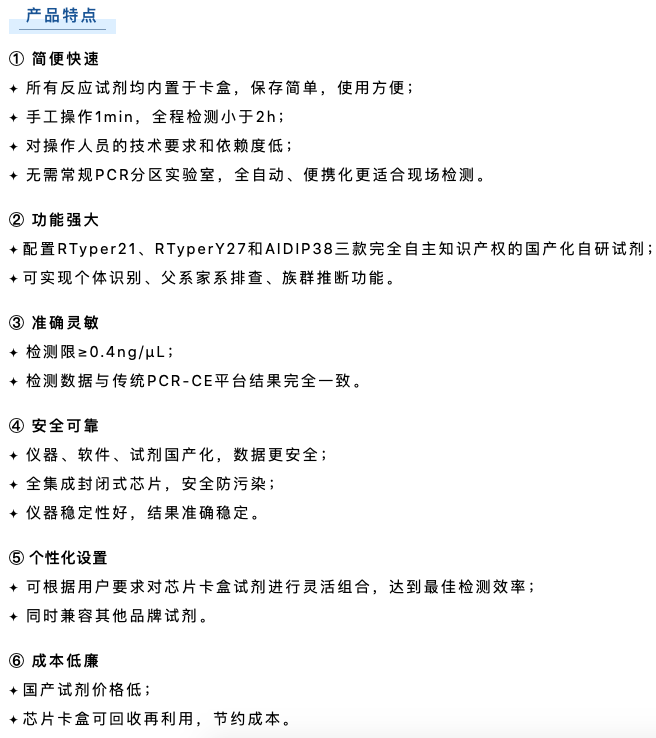博奧晶典Quick TargSeq全集成自動化現場快速DNA檢測系統是由公安部鑒定中心聯合清華大學、博奧生物集團、北京博奧晶典生物技術有限公司共同開發的國內第一款具有完全自主知識產權的全集成自動化現場快速DNA檢測系統。該系統采用模塊化微流控芯片技術,將樣本前處理、多重 PCR 擴增和毛細管電泳全過程集成于一體,實現 2 小時“樣本進-結果出”的法醫 DNA 現場快速檢測,可在野外、車載等非實驗室環境下運行,為我國公安機關現場犯罪偵破、海關出入境檢查、重大公共安全事件的快速處置增添強勁利器。目前,博奧晶典DNA快檢系統已遠銷俄羅斯、岡比亞等國,以先進的技術裝備支持刑事科學技術邁向新臺階。